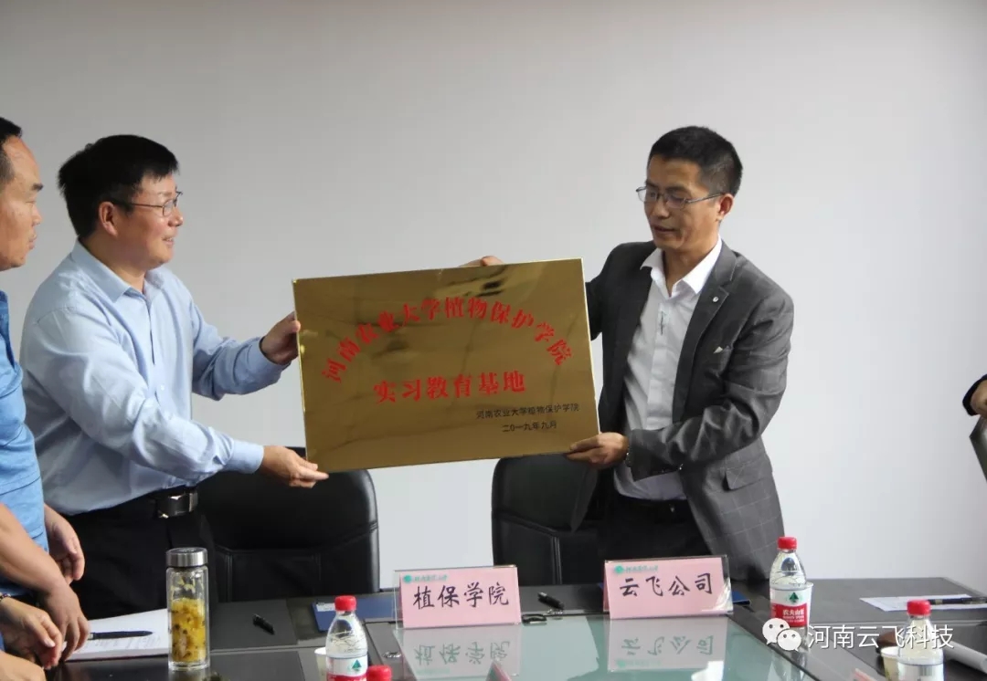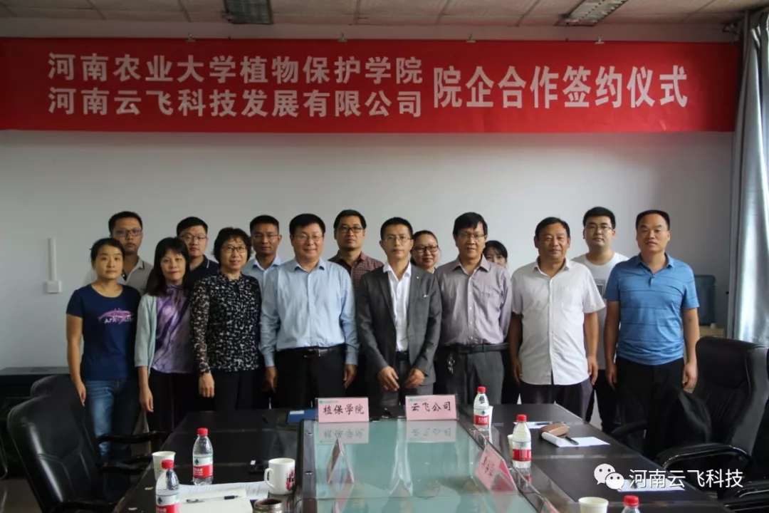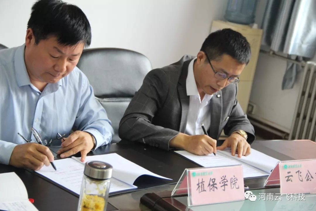 2019年9月30日上午,河南云飛科技發(fā)展有限公司(以下簡(jiǎn)稱“河南云飛")與河南農(nóng)業(yè)大學(xué)植物保護(hù)學(xué)院(以下簡(jiǎn)稱“河南農(nóng)大植保學(xué)院")院企合作簽約儀式在河南農(nóng)業(yè)大學(xué)隆重舉行。河南農(nóng)大植保學(xué)院院長(zhǎng)李洪連、河南農(nóng)大植保學(xué)院副院長(zhǎng)郭線茹、河南農(nóng)科院植物蟲(chóng)害研究室主任武予清、河南云飛總經(jīng)理周?chē)?guó)濤、河南云飛銷(xiāo)售總監(jiān)李喜臣、河南云飛人力資源總監(jiān)王麗娟等人出席了儀式。