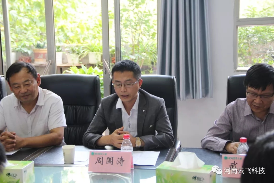 河南云飛總經(jīng)理周?chē)?guó)濤發(fā)表講話:河南農(nóng)大的校訓(xùn)“明德自強(qiáng),求是力行”和河南云飛的企業(yè)價(jià)值觀高度匹配,希望以這次院企合作為契機(jī),促進(jìn)雙方在社會(huì)實(shí)踐、科技推廣等方面的合作交流,通過(guò)深入合作,促進(jìn)雙方科研、科技創(chuàng)新能力和技術(shù)水平的共同提升,培養(yǎng)更多的農(nóng)業(yè)科研和技術(shù)人才,進(jìn)而推動(dòng)河南乃至中國(guó)農(nóng)業(yè)的發(fā)展。